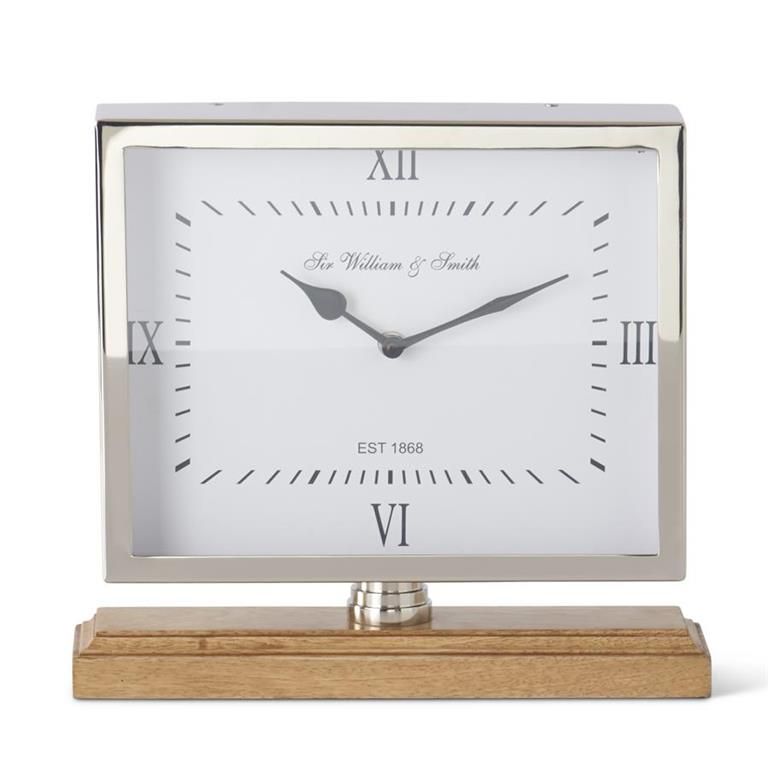 Silver Metal Table Clock on Spindle w/Wood Stand