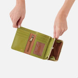 - Interior Front: Slip pocket, zip change pocket, ID holder & 4 credit card slots; Interior Back: Bill slot