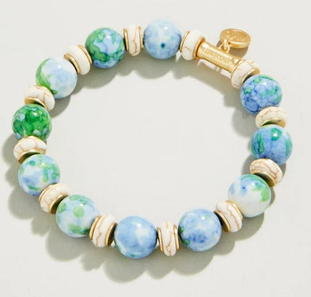 Stone Stretch Bracelet Mottled Jade Green/Blue