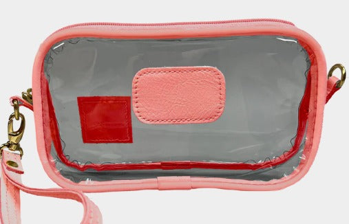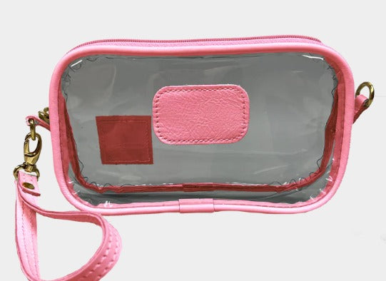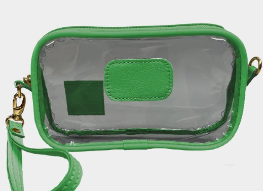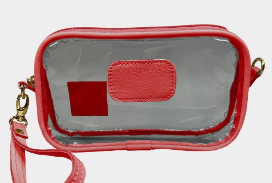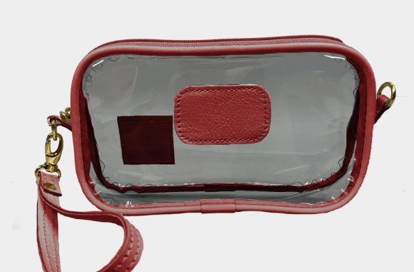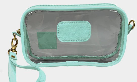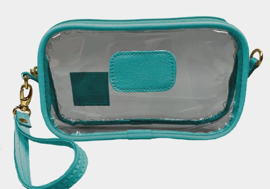Everyone’s favorite Wristlet now in CLEAR! This Clear Wristlet is a must have for games, concerts, pool days, beach trips & all other events! With over 15 colored leather trim options to choose from, you can’t go wrong!