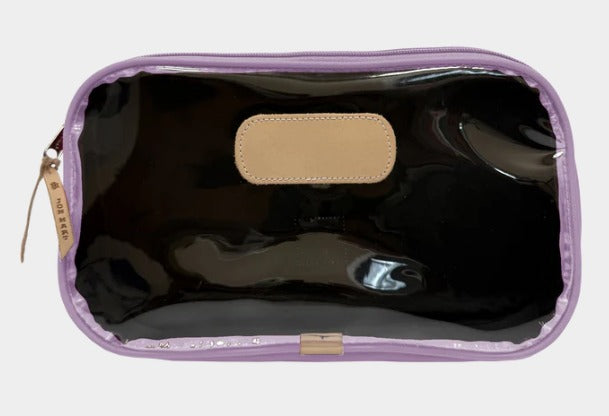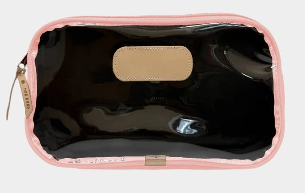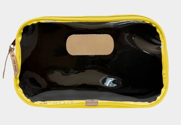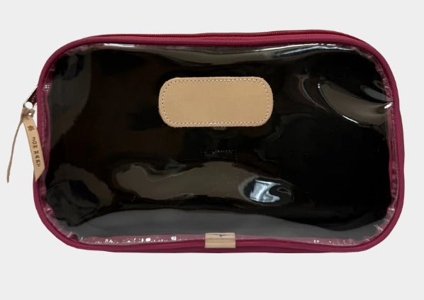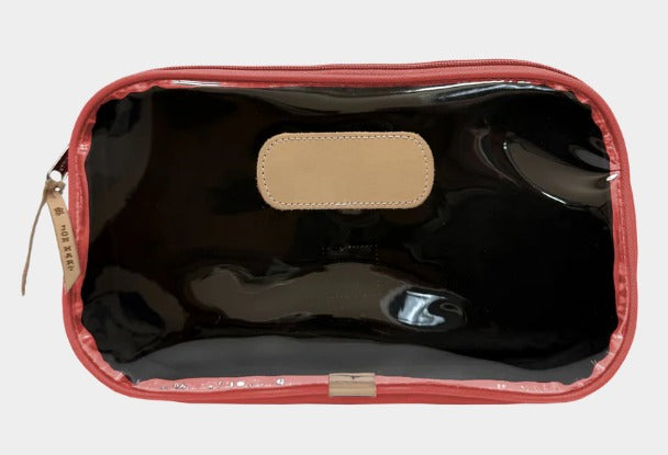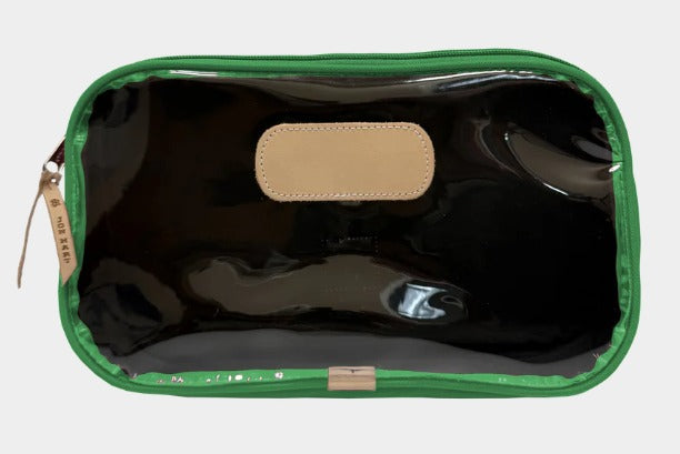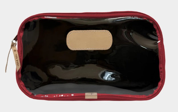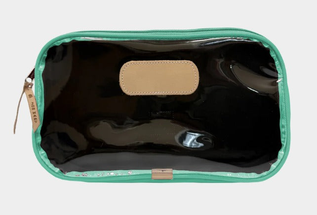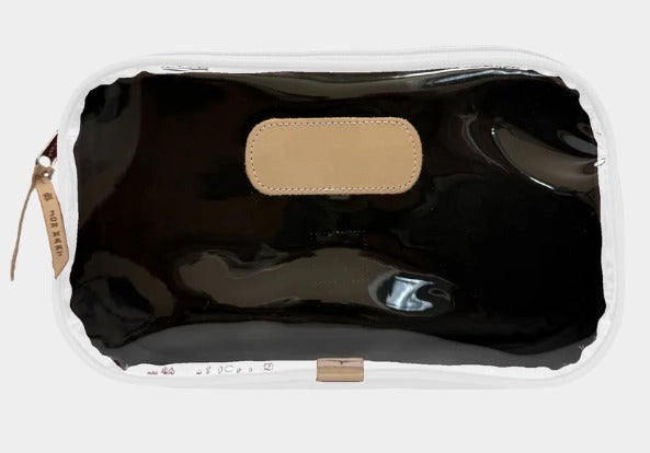 The Compass is a roomy zip-top bag designed to carry it all... from toiletries to Mahjong tiles to snacks on the go. Its unique A-line gusset gives it a sleek look at the top while expanding at the base for extra space where you need it most. A clear front makes contents easy to find, while the coated canvas back adds a classic Jon Hart touch.