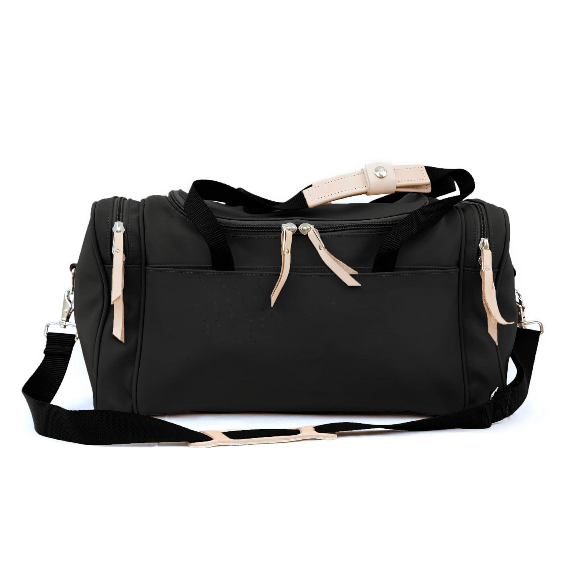 Webbing handles with Natural Leather detail and silver snap closures