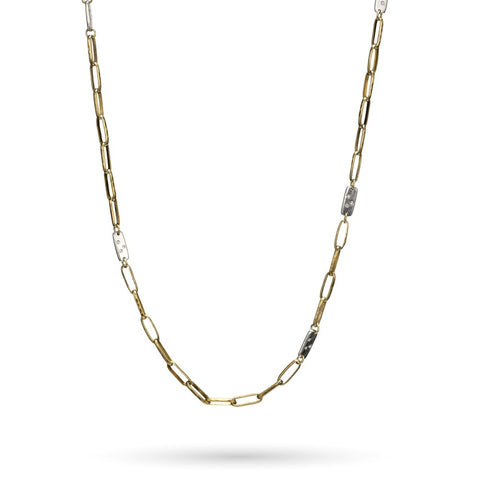The Seppo Station Chain features a weightier design composed of long, open links of rich brass and scattered stations of solid sterling silver, each accented with three tiny crystals. Designed for wear both with charms or pendants or sans ornamentation, Seppo, meaning ‘skillful’ is the perfect component for layering with other styles of chain, or delights just as much on its own. Designed with intention and to delight, one cannot go wrong with it.