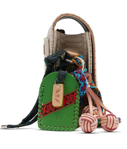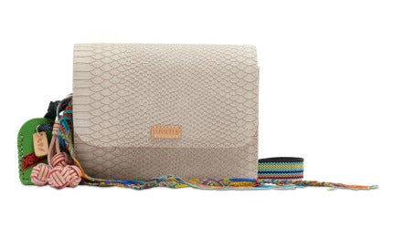 - Adjustable woven crossbody strap