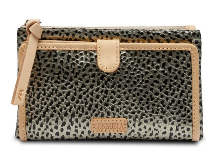 Our Slim Wallet carries cards and cash without weighing you down. Open the snap closure to reveal an ID window pocket, 12 card slots, and 4 slide pocket compartments in this versatile bifold.